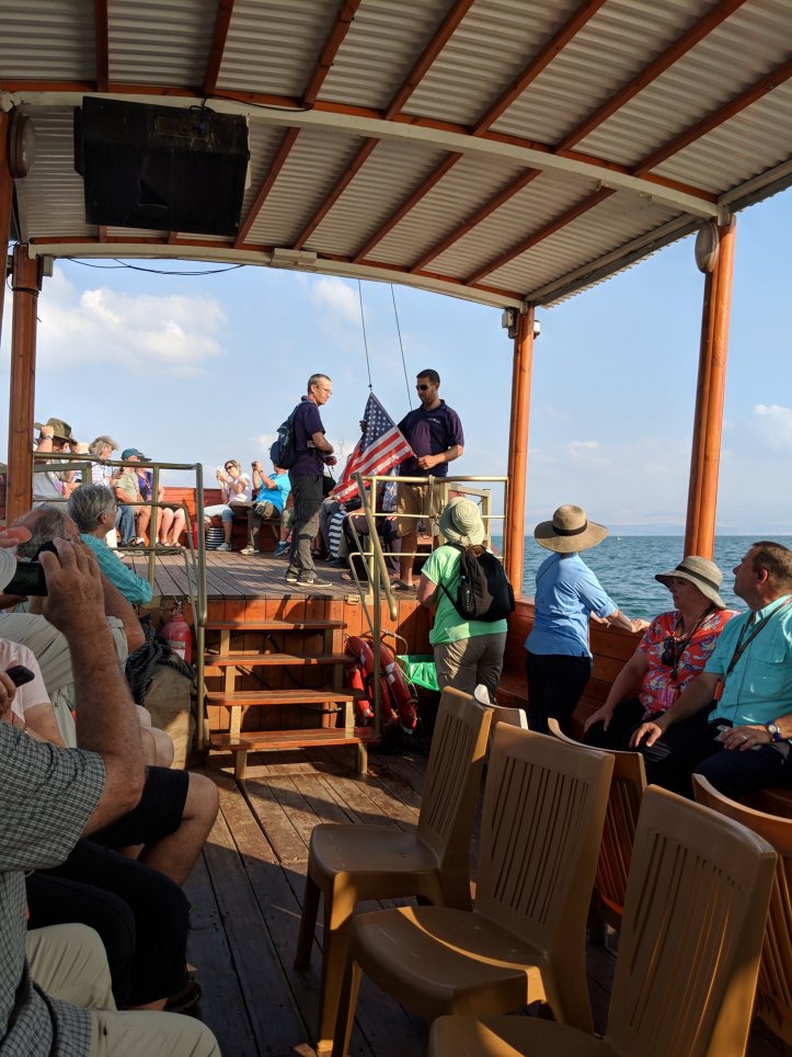 Today we rode a boat across the Sea of Galilee. I enjoyed this peaceful experience. I’ve been struggling with mental overload the last few days so I’m savoring every still moment I can get. We have these whisper devices that allow our tour guide to speak into a microphone and we can all listen through an earpiece. It’s very handy and keeps the guides from having to shout over each other in order to be heard at the different crowded sites. Handy though it may be, it’s made it hard for me to feel like I can have any of my own thoughts. But today on the boat, I turned my device off and just listened to the water. It was wonderful.