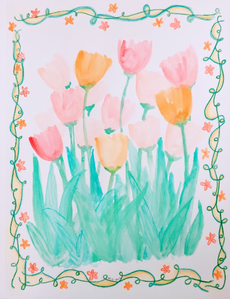 I’ve been twiddling with some doodles and watercolors during some of my downtime and the other day one of the Area presidency members walked by and really liked what I’d done. So much so that he came by a little while later and asked if he could take a picture of it. That felt good. Art is a way for me to meditate and helps to pull me out of the doldrums, so I do it when I can. I do it when I’m hurting, or mad, or frustrated, or discouraged. I tend to work those things through by drawing, painting, or writing poetry. Poetry is something I think I’ll be coming back to more. I like the way it gives me a mental lift.